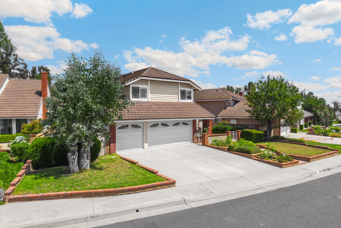 Nestled in the prestigious North Hills Community of Brea, this spacious 4-bedroom, 3-bathroom residence offers 2,464 square feet of comfortable living. Built in 1979 and featuring an attached three-car garage, the home combines timeless architecture with thoughtful updates, all set in a neighborhood known for its charm and amenities. Step into the inviting living room, where soaring vaulted ceilings and a generous front-facing window create an airy, sunlit space. A cozy gas fireplace anchors the room, perfect for relaxing evenings or welcoming guests with warmth and style. Just beyond, the elegant dining area awaits—ideally positioned between the living room and kitchen. A classic chandelier adds a touch of sophistication, making this space ideal for both intimate dinners and festive gatherings. The kitchen is a chef’s delight, offering abundant cabinetry, gleaming granite countertops, and a wide window above the sink that frames a tranquil view of the backyard. Whether prepping meals or enjoying morning coffee, this space is both functional and scenic. Continue into the expansive family room, where a second fireplace adds ambiance and a sliding glass door opens to the backyard, seamlessly blending indoor comfort with outdoor living. Also on the main level, you’ll find a convenient laundry area and a 3/4 bathroom with a shower—perfect for guests. Upstairs, three well-appointed guest bedrooms share a full bathroom, offering comfort and privacy for family or visitors. The primary suite is a true retreat. Vaulted ceilings lend a sense of openness, while a private balcony invites you to unwind under the stars. Dual closets with mirrored doors provide ample storage, and the en-suite bathroom features a shower/tub combo for ultimate relaxation. Step outside to the backyard oasis, complete with a covered patio ideal for alfresco dining and a lush grassy area perfect for play or gardening. As part of the North Hills Association, residents enjoy access to a sparkling pool, welcoming clubhouse, pickleball and tennis courts, and a playground—creating a vibrant community lifestyle. Located near award-winning schools, top-rated restaurants, and a variety of shopping destinations, this home offers not just a place to live, but a place to thrive.