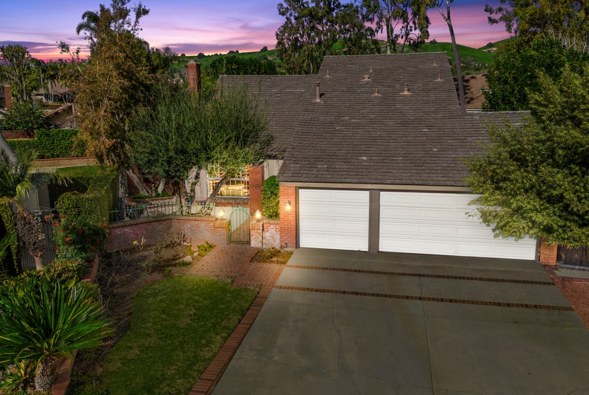 This beautiful four-bedroom home sits on a cul de sac located in the sought after North Hills community of Brea. The property boasts four-bedrooms, a three-car garage, and an extremely desirable floor plan with a main floor bedroom. As you enter through the double doors you will notice the wonderful airy feel that the high vaulted ceilings and newly replaced double paned windows give the home. The formal dining room is adjacent to a formal living room that features a lovely fireplace and mantle. In the lovely kitchen you will find plenty of cabinets, recessed lighting and granite countertops. The family room has lots of windows looking out to the very serene lush private backyard. Upstairs you will be amazed how large the two secondary bedrooms are. The primary bedroom has an all-new primary bathroom with beautiful new double sinks, granite countertops, custom vanities and an extra-large walk-in shower with custom tile that is one of a kind. The backyard offers so much for those nature lovers with all its trees and lush plants. You will love all the amenities the North Hills Community has to offer including an Olympic size swimming pool, a large club house, tennis courts and more. The home is centrally located near the 57 fwy, downtown Birch Street and the Brea mall. Don’t forget about Brea’s award-winning school district! Don’t miss this one!!