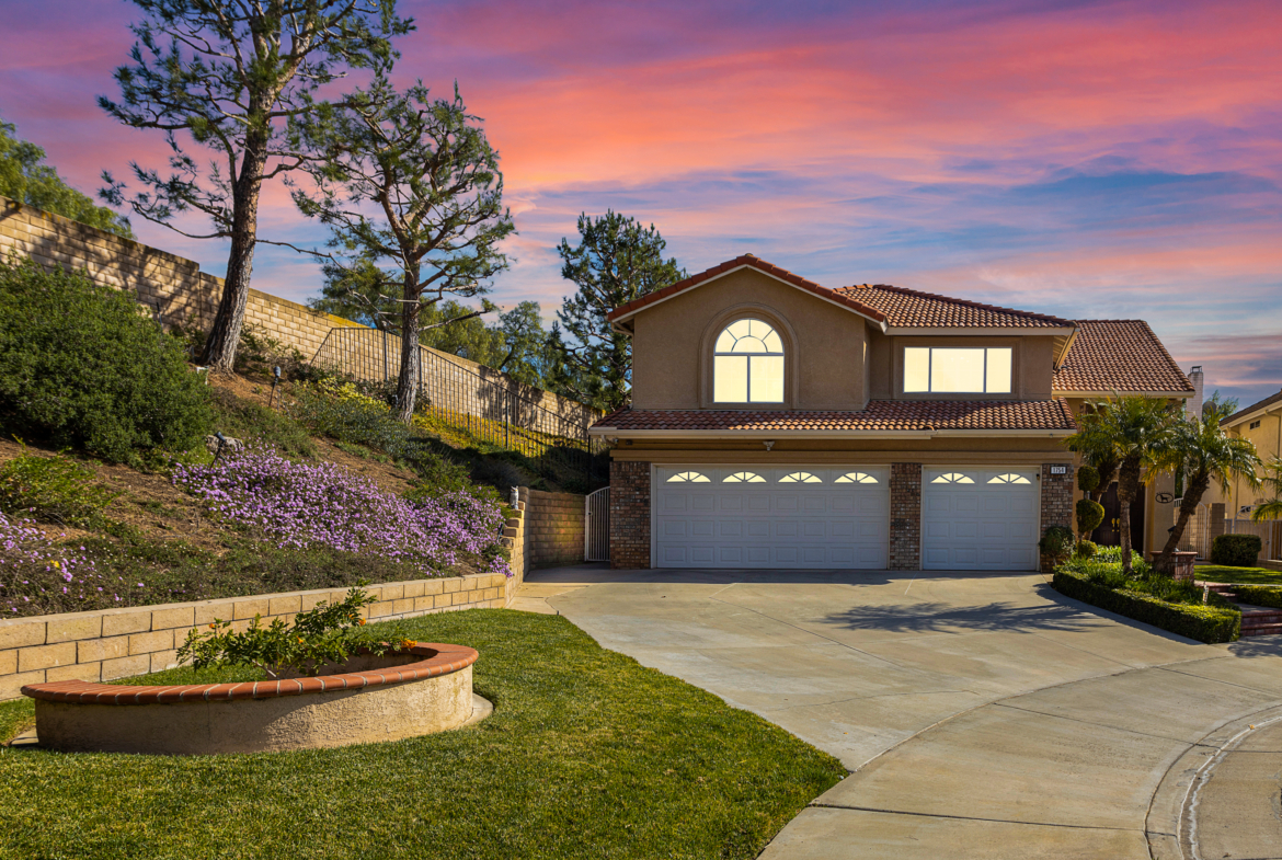 Welcome to this incredible, highly upgraded home located in the very desirable Brea Terrace community! This gorgeous house boasts five bedrooms, three bathrooms and is located on a quiet cul-de-sac. Double wooden entry doors invite you into the spacious living room and dining area. The 17 ft high ceilings, custom tile floors and large windows make this a bright and open floor plan. You’re sure to enjoy the main floor guest bedroom with direct access to a remodeled bathroom. The spacious family room boasts a cozy fireplace and the casual dining area creates great space to sit with family and friends. This newly remodeled gourmet kitchen has everything you could want; including stainless steel appliances, double ovens, a five burner Viking range and microwave, custom cabinets, beautiful quartz countertops accented by a wonderful backsplash, and an extra-large island with custom drop-down lights. As you make your way up the lovely stairway you will notice the newer carpeting and custom plantation shutters. Inside the stunning master suite, you will find an EXTRA-LARGE walk-in closet with custom cabinets and vanity. The large remodeled en suite bathroom features a separate shower, large soaking tub, custom vanities with quartz countertops, double sinks, a second walk-in closet, and a crank open skylight with electric shade. Upstairs you will also enjoy two additional bedrooms, a bonus room that can be used as a fifth bedroom or office and another remodeled bathroom. The backyard is an outdoor entertainer’s dream; featuring a custom covered patio with recessed lighting, Bluetooth speakers, large TV, a nice grassy area and views of the Brea foothills. Other amenities include an indoor laundry room with sink, and a three-car garage with a 220v outlet for car charging and great built in storage cabinets. A beautiful swimming pool, spa, barbeques and tennis courts are all wonderful HOA amenities just a short walk from the property. You will love the award-winning Brea Olinda School District. This fabulous home is move in ready!