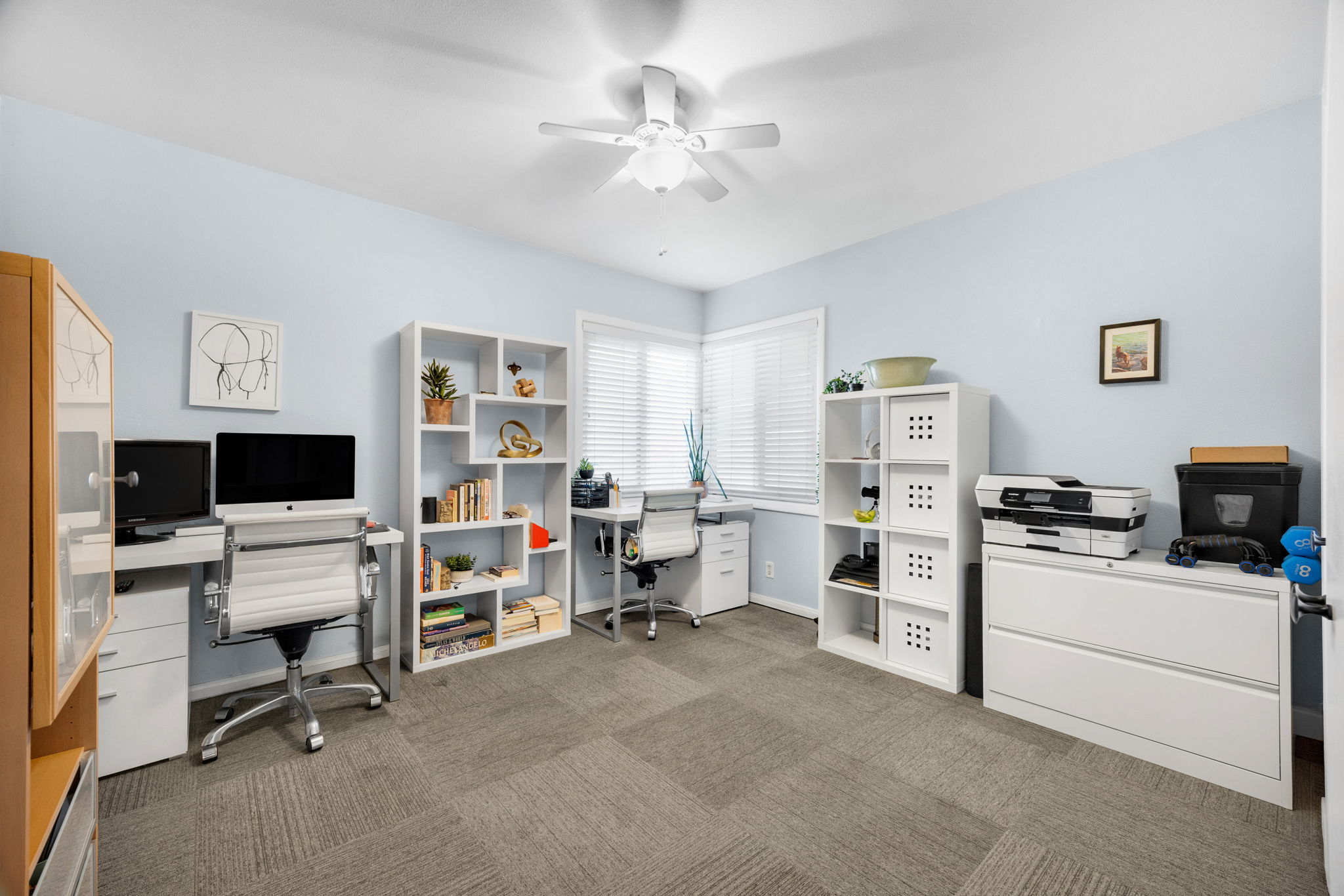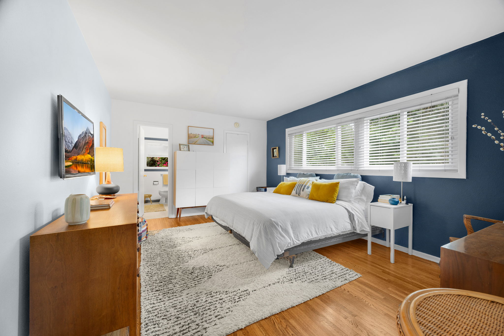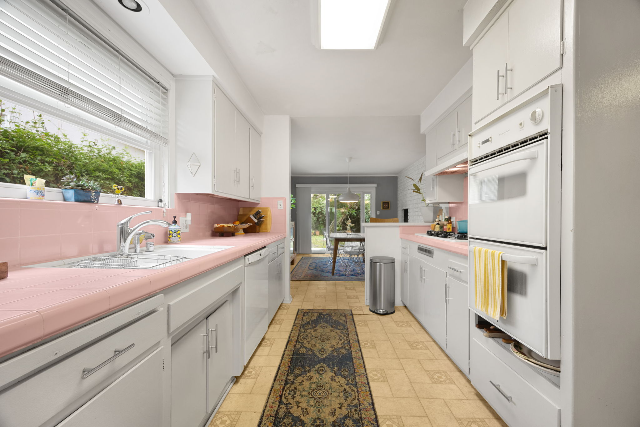 Nestled on a peaceful cul-de-sac in Valley Village, this charming single-level home offers 3 bedrooms, 2 bathrooms, and 1,727 sq ft of comfortable living space. Built in 1958, it features an attached two-car garage and a layout designed for ease and flow. Step through the front door and into the inviting living room, where rich wood flooring stretches across much of the home, setting a warm and cohesive tone. Just beyond, the formal dining area awaits—anchored by a cozy fireplace and illuminated by natural light pouring through a glass sliding door that opens to the backyard. The kitchen, conveniently located adjacent to the dining area, is equipped with ample cabinetry and a double oven, perfect for culinary enthusiasts. A quaint dinette area sits nearby, offering a lovely view of the front yard and a relaxed spot for morning coffee. Tucked between the kitchen and dinette is a discreet laundry closet, adding everyday practicality. Down the hall, two guest bedrooms provide restful retreats, each outfitted with ceiling fans for added comfort. A full guest bathroom serves these rooms, offering functionality and style. The primary bedroom suite is generously sized, featuring a walk-in closet and its own en-suite 3/4 bathroom with a shower, creating a private haven within the home. Step outside to discover a tranquil backyard framed by lush landscaping that enhances privacy. A covered patio invites outdoor dining, lounging, or entertaining in a serene setting. Located near award-winning schools, popular restaurants, and abundant shopping options, this home combines quiet residential living with convenient access to everything Valley Village has to offer.