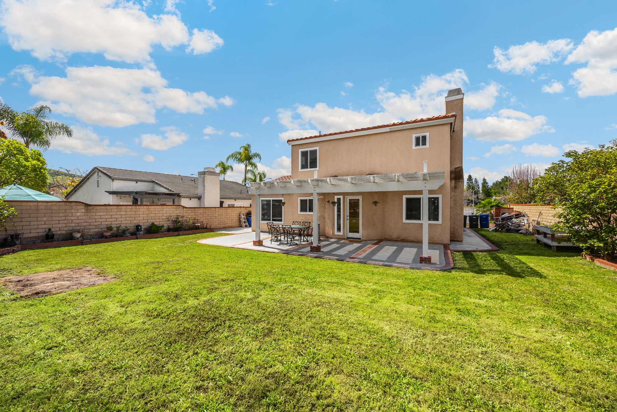Welcome to this lovely Diamond Bar residence offering 3 bedrooms, 3 bathrooms, 1,545 sq ft of comfortable living space, an attached two‑car garage, and timeless charm from its 1988 build. Stepping inside, the living room greets you with vinyl flooring that extends throughout the main level, a bright bay window, and recessed lighting that creates an inviting atmosphere. The living room transitions seamlessly into the formal dining area, where large windows bring in natural light and the layout connects effortlessly to the kitchen. The remodeled kitchen features custom white cabinetry, quartz countertops, and a window above the sink framing a peaceful view of the backyard. Just beyond, the family room offers a warm gathering space highlighted by a gas fireplace and convenient proximity to the kitchen. Also on the main level are a guest half bathroom and a dedicated laundry room, adding everyday practicality. Upstairs, two guest bedrooms share a beautifully updated three‑quarter bathroom. The primary bedroom suite sits on the opposite end of the hall, offering an extra‑large retreat complete with a stunning en‑suite full bathroom. Outside, the backyard invites relaxation and entertaining with its large covered patio, generous lawn, and classic brick hardscape. Other improvements include a new HVAC system (1yr old), three year old roof, and a two year old tankless water heater. The location places you near award‑winning schools, great restaurants, and abundant shopping options, making this home an exceptional opportunity in a highly desirable community.