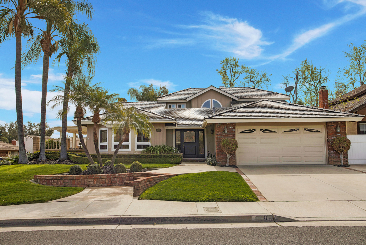 This beautiful, one-of-a-kind, semi-custom home is located in the sought-after North Hills Community in Brea. You will love what this home has to offer! As you enter through the gorgeous Dutch front door you will immediately notice all the wonderful details; including gorgeous hardwood floors, double paned UV windows and sliders, recessed lighting throughout, wood shutters, two stone fireplaces with gas logs, and built-in surround sound. The gourmet kitchen features custom cabinets with granite countertops and travertine backsplash, Sub-Zero 632 side by side refrigerator, Wolf dual fuel range and oven, U-Line wine refrigerator and a wonderful breakfast bar adjacent to the spacious dining area. Downstairs you will also find two living spaces and an office/media room. What a treat to have a large downstairs master suite with an attached master bathroom featuring double vanities, custom built-in shelving, marble countertops and an extra-large glass walk-in shower. Upstairs you find a large window with views of the Brea foothills, as well as three bedrooms, a bathroom, and a private sun deck off of one of the bedrooms. The low maintenance backyard features an above ground spa, a lovely fountain, sunshade coverings and artificial turf; great for the outdoor California lifestyle.