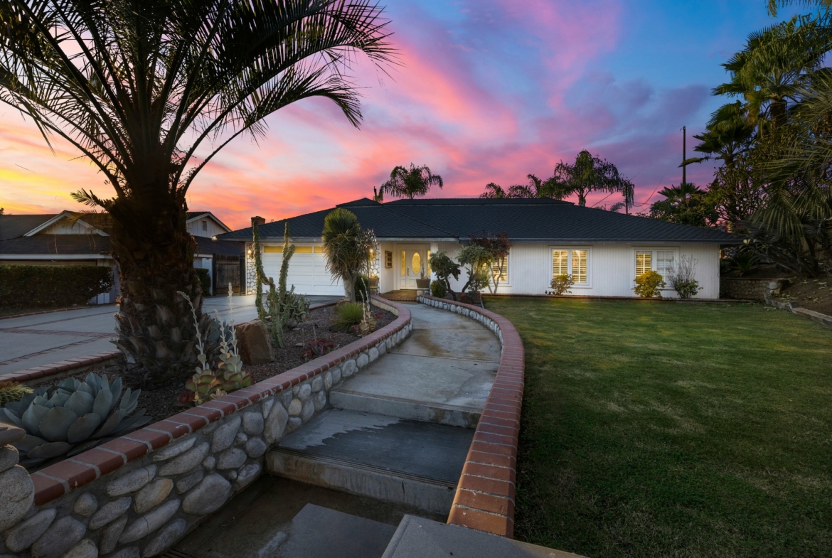 Welcome to this charming single-story residence located on a tranquil street in Brea. Featuring 4 bedrooms and 2 bathrooms, this 1,837 sq ft home is designed for both comfort and functionality. As you step into the large entryway, you are greeted by brand-new flooring and an open floor plan that seamlessly flows into the expansive living area. The living room is a welcoming space with a cozy fireplace, recessed lighting, and a stacking sliding door that blurs the lines between indoor and outdoor living. Adjacent to the living room, the kitchen is a chef’s delight, boasting custom cabinetry, granite countertops, and a premium WOLF oven. The kitchen opens up to both the living and dining areas, making it perfect for entertaining. In the dining area, you’ll find a large window that frames the backyard view and a skylight above, flooding the space with natural light. The practical laundry room, located just off the kitchen, offers plenty of cabinetry to meet all your storage needs. Down the hall, you will discover three well-appointed guest bedrooms that share a full guest bathroom, providing ample space for family or visitors. The primary bedroom suite is a serene retreat, featuring a large bay window that looks out to the backyard, a spacious cedar-lined walk-in closet, and an ensuite bathroom with a large shower. Step outside to the backyard, an entertainer’s dream. This outdoor oasis includes a paver patio area, a large grassy lawn, and a sports court complete with a basketball hoop. A charming small cottage provides versatile space that could be used as a playhouse or home office. Other features of this property include exterior hardscape, custom landscaping, exterior lighting, and a two-car garage. This delightful home offers a blend of modern amenities and timeless appeal, providing a perfect setting for making lasting memories. Don’t miss out on the opportunity to call this beautiful property your new home.